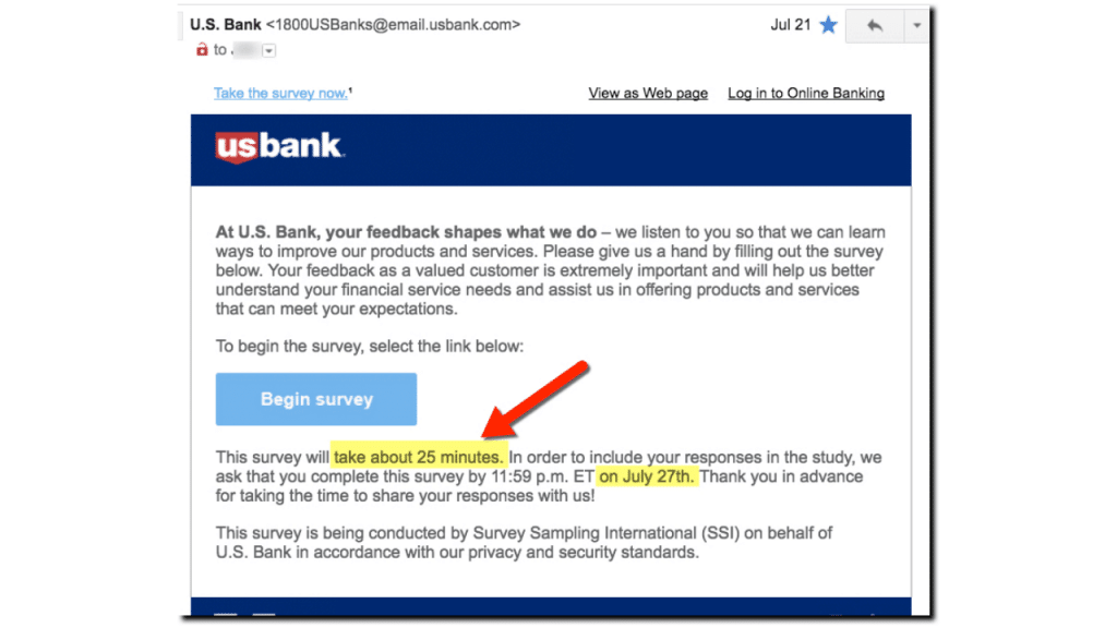 Here’s an example of a customer feedback survey from U.S. Bank: